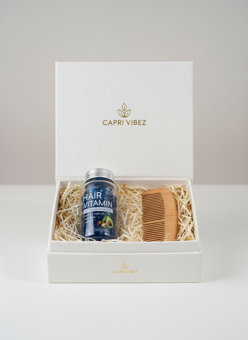 Boost your hair's health with Capri Vibez Hair Vitamins. This hair serum is formulated with vitamins A, C, and E to nourish and strengthen your hair. Experience visible results and healthier, more vibrant hair. Keratin & Argan Oil, Avocado Oil, Jojoba Oil.